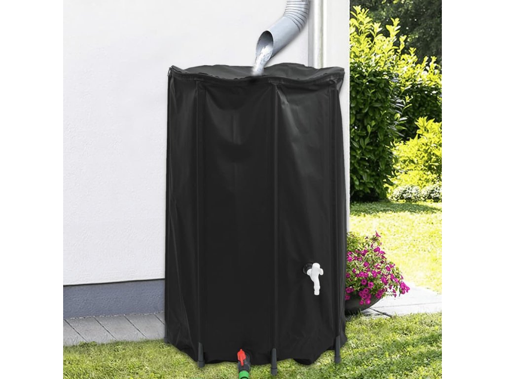 Skládací nádrž na dešťovou vodu bez námahy zachycuje vodu z dešťových srážek a ukládá ji pro pozdější použití.