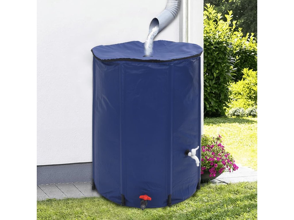Skládací nádrž na dešťovou vodu bez námahy zachycuje vodu z dešťových srážek a ukládá ji pro pozdější použití.