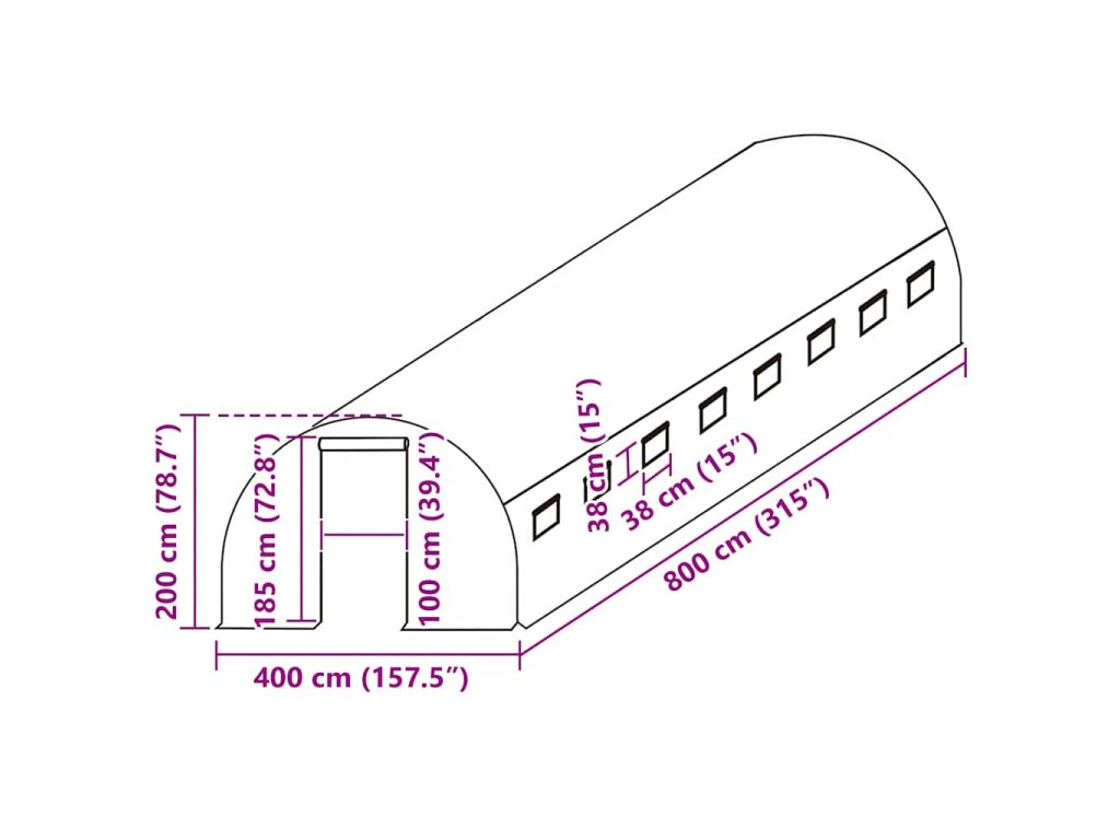 Náhradní plachta na skleník (32 m²) 400 x 800 x 200 cm zelená 316446