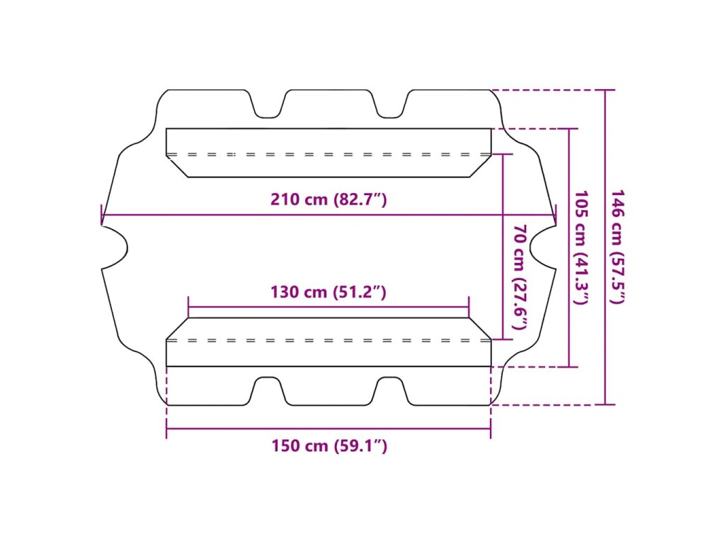 - Vhodné pro zahradní houpačky s rozměry stříšky mezi 150/130 x 105/70 cm (D x Š)