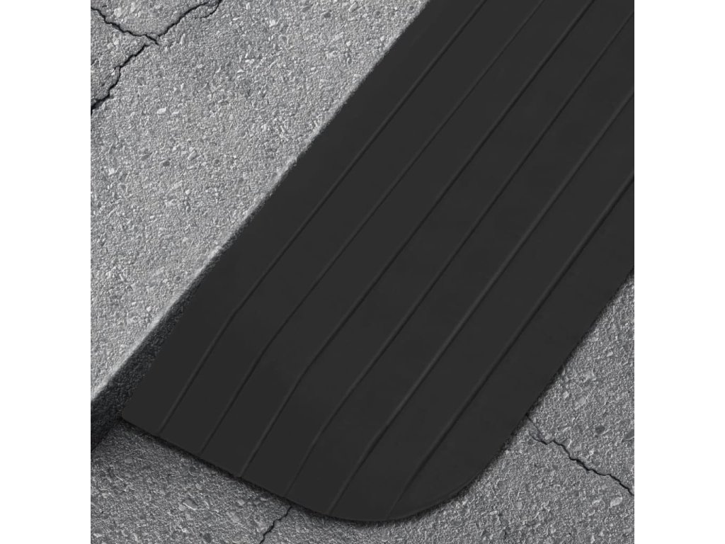 Silniční rampa je vyrobená z robustní pryže, takže je lehká, odolná a má dlouhou životnost. Drsný povrch s protiskluzovou strukturou brání sjetí nebo sklouznutí koleček při najíždění nahoru.