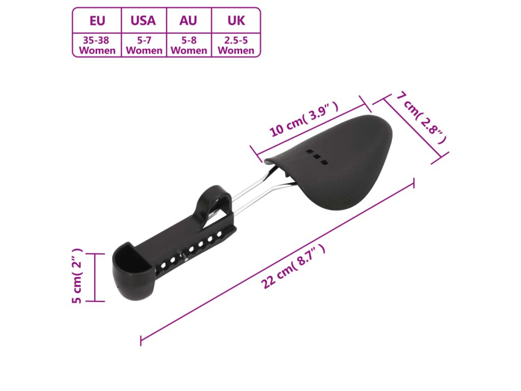 - Flexibilní konstrukce: Tyto napínáky mají otvory pro nastavení délky. Můžete je také použít i na vysoké boty, když tento černý kovový rám s otvory upevníte vertikálně.