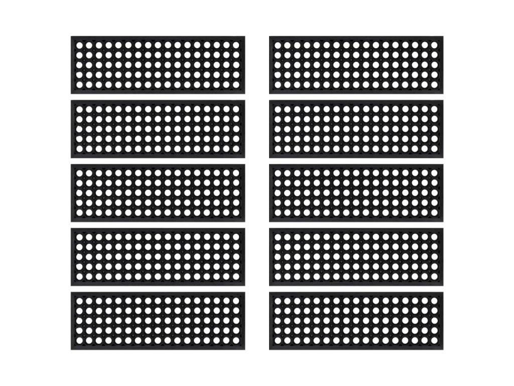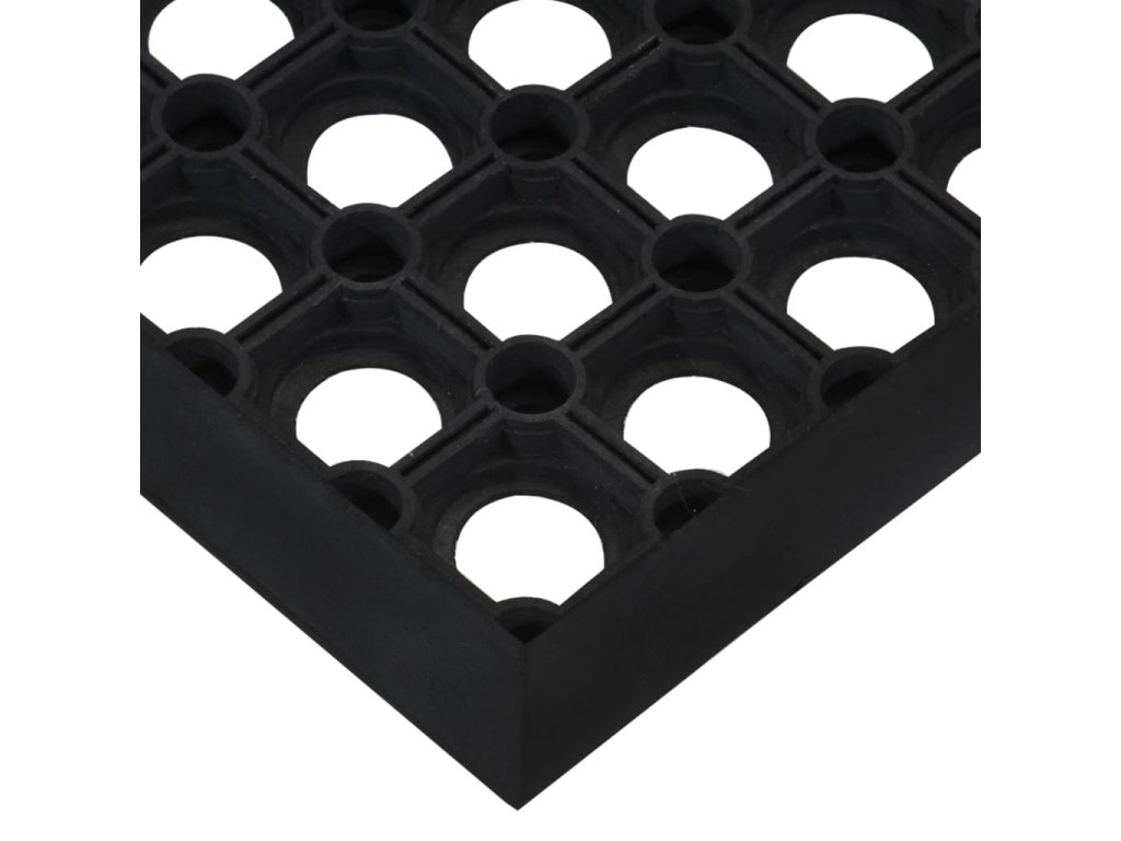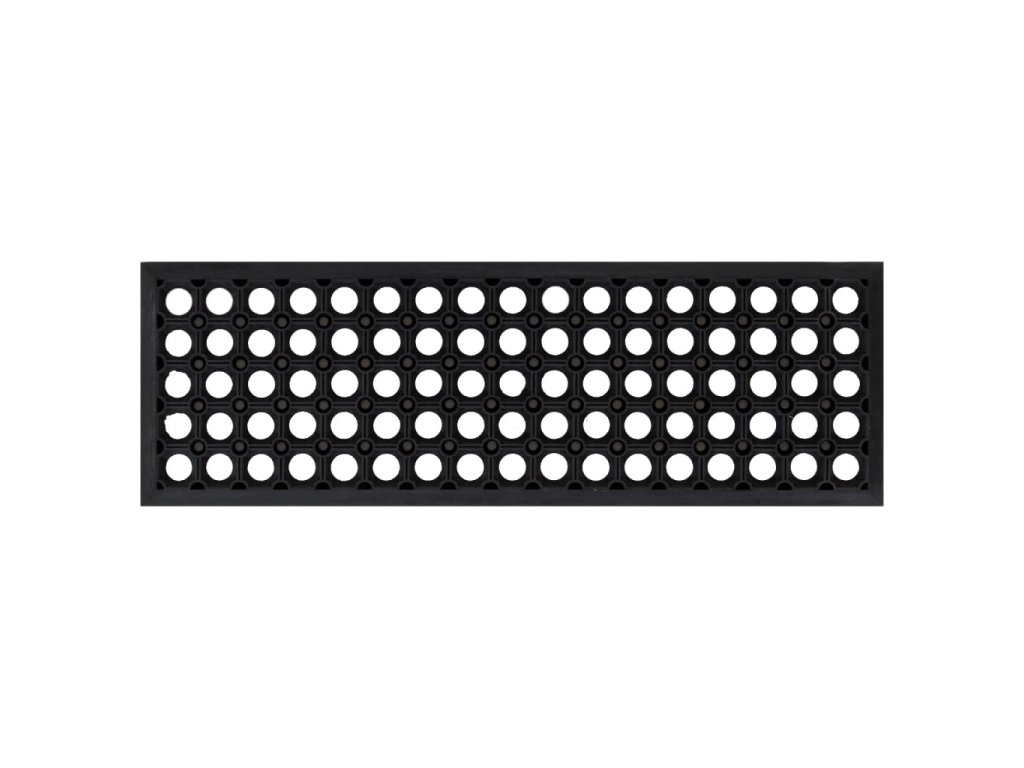 - Snadno se čistí: Design s otvory umožňuje průchod tekutin a nečistot, díky čemuž lze gumový nášlap snadno zamést nebo opláchnout hadicí.