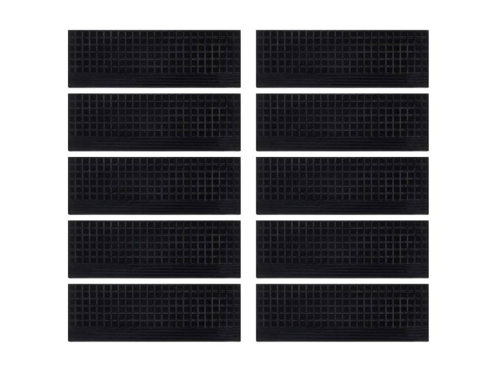 - Odolný materiál: Nášlapy na schody jsou vyrobeny z pružné gumy odolné proti opotřebení, která tlumí nárazy a zajišťuje jejich dlouhou životnost a odolnost proti skvrnám.