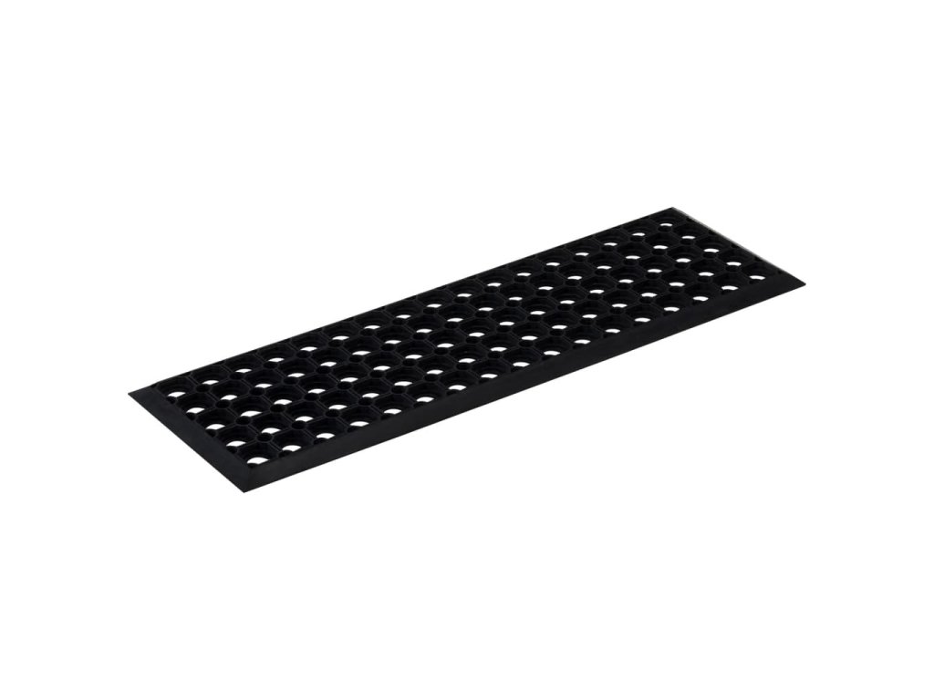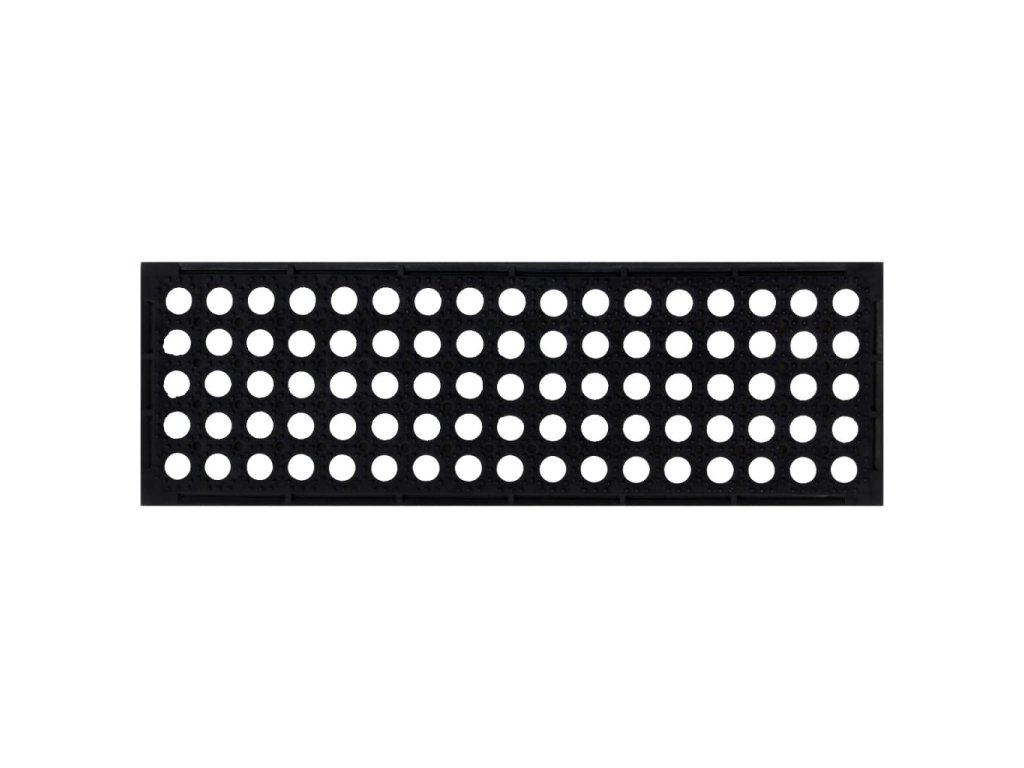 - Snadno se čistí: Design s otvory umožňuje průchod tekutin a nečistot, díky čemuž lze gumový nášlap snadno zamést nebo opláchnout hadicí.