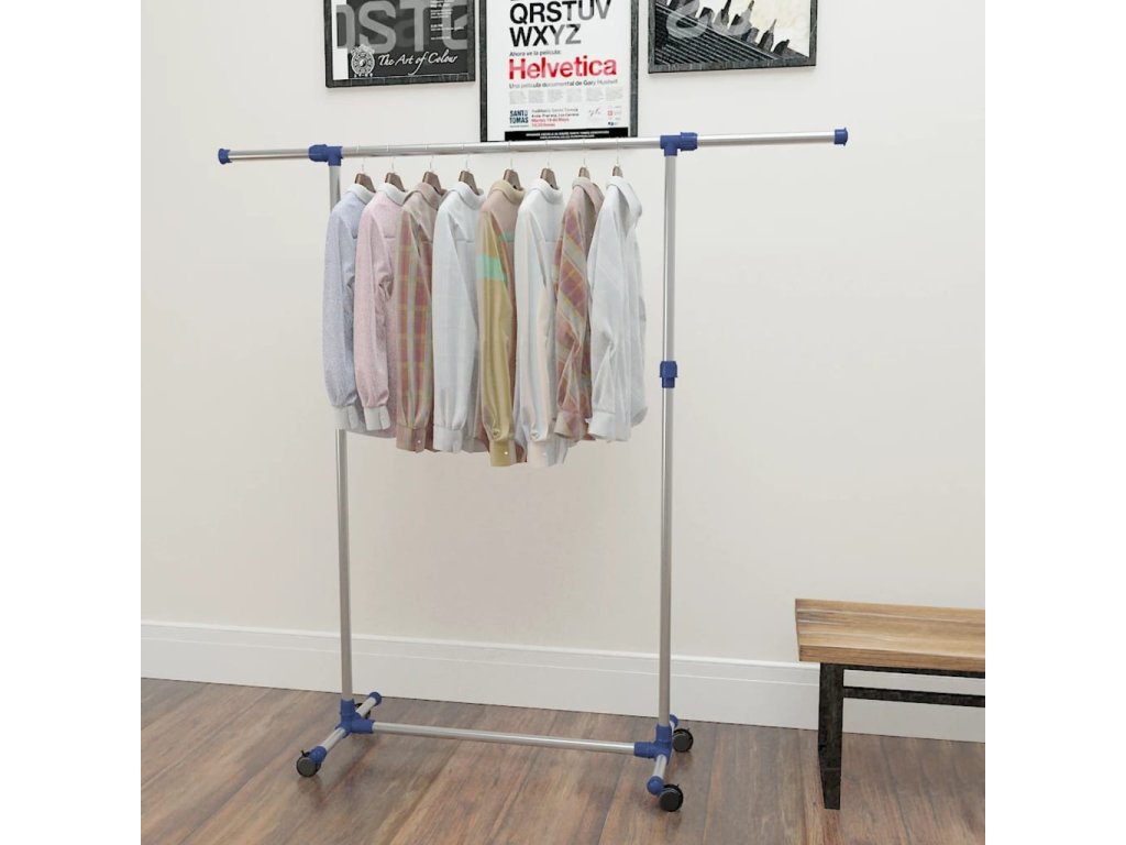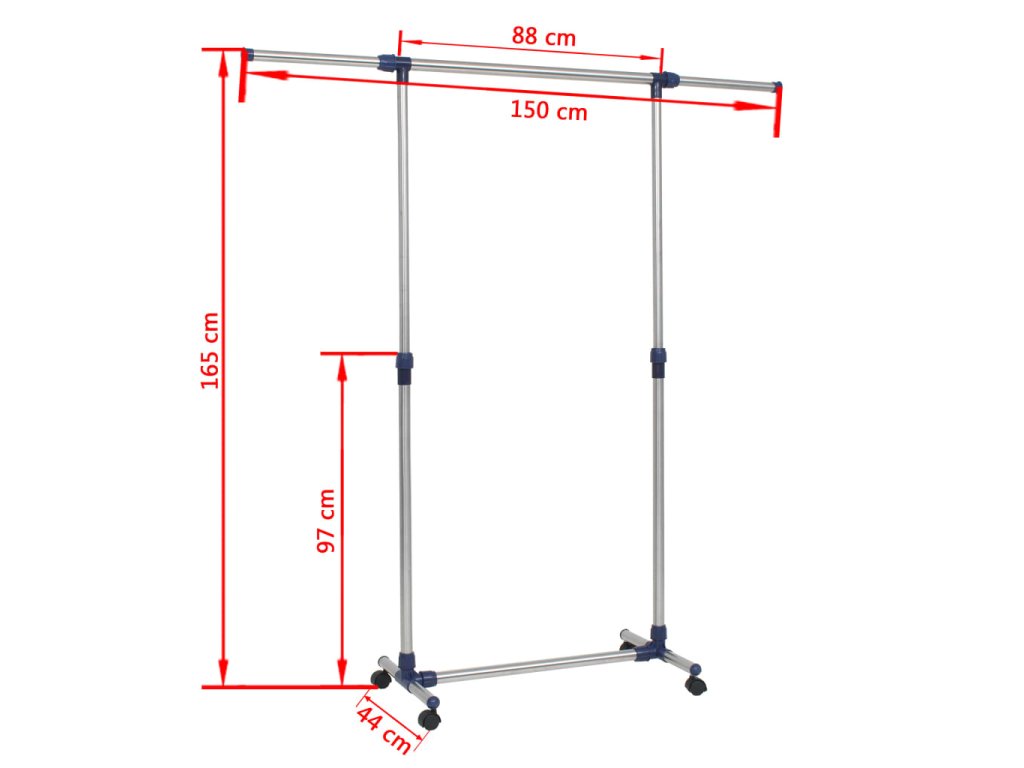 Má trubkový rám z nerezové oceli, který je lehký a zároveň pevný a odolný. Díky designu, jenž umožňuje nastavení délky a výšky, můžete na tento stojan pověsit téměř všechny typy oděvů. Stojan na oblečení je vybaven čtyřmi kolečky, dá se tedy snadno přesouvat po celém pokoji.
