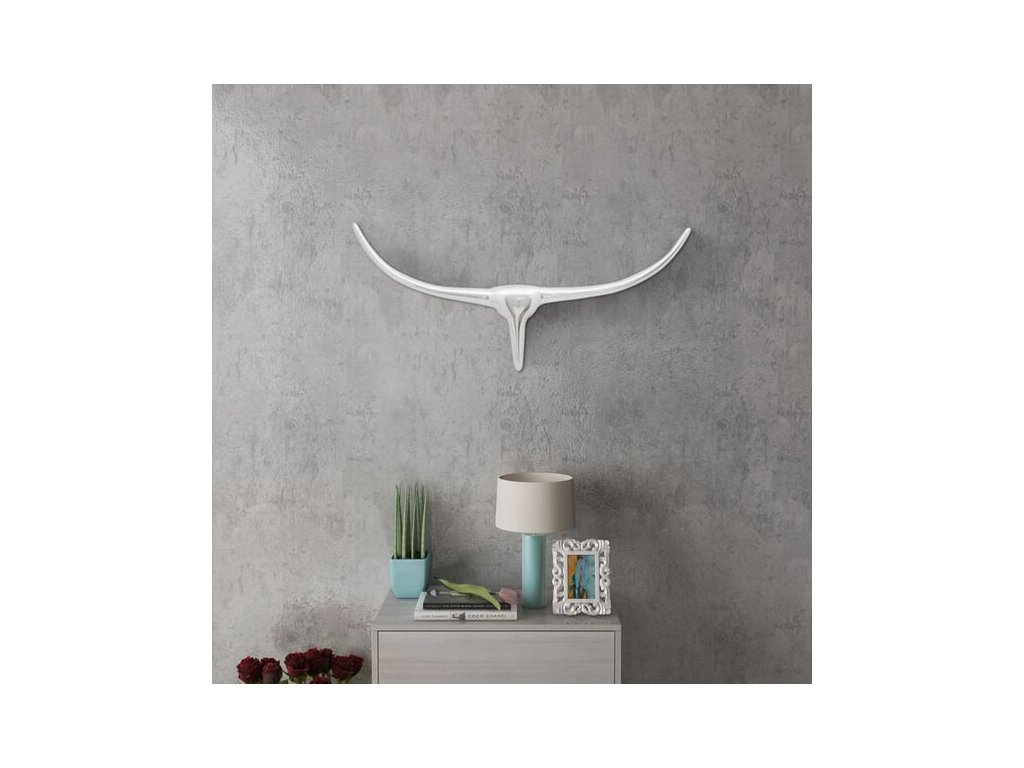 Tato jedinečná hliníková býčí hlava má krásné rohy, a bude úžasným a poutavým doplňkem, který do vašeho interiéru vnese dávku lovecké atmosféry.