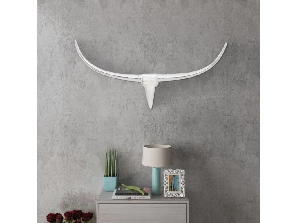 Nástěnná hliníková býčí hlava, dekorace, stříbrná barva 96 cm 242337