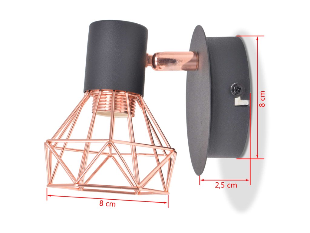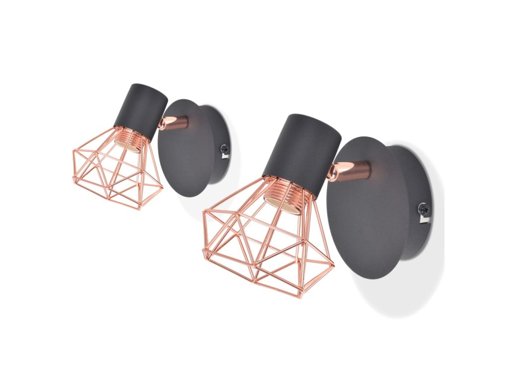 Tyto 2 nástěnné lampy se mohou jsou vyrobeny v industriálním designu, který zkrášlí každý pokoj. Lampy mají černou základnu z vysoce kvalitního kovu. Tím pádem jdou jednoduše připevnit na zeď či strop.