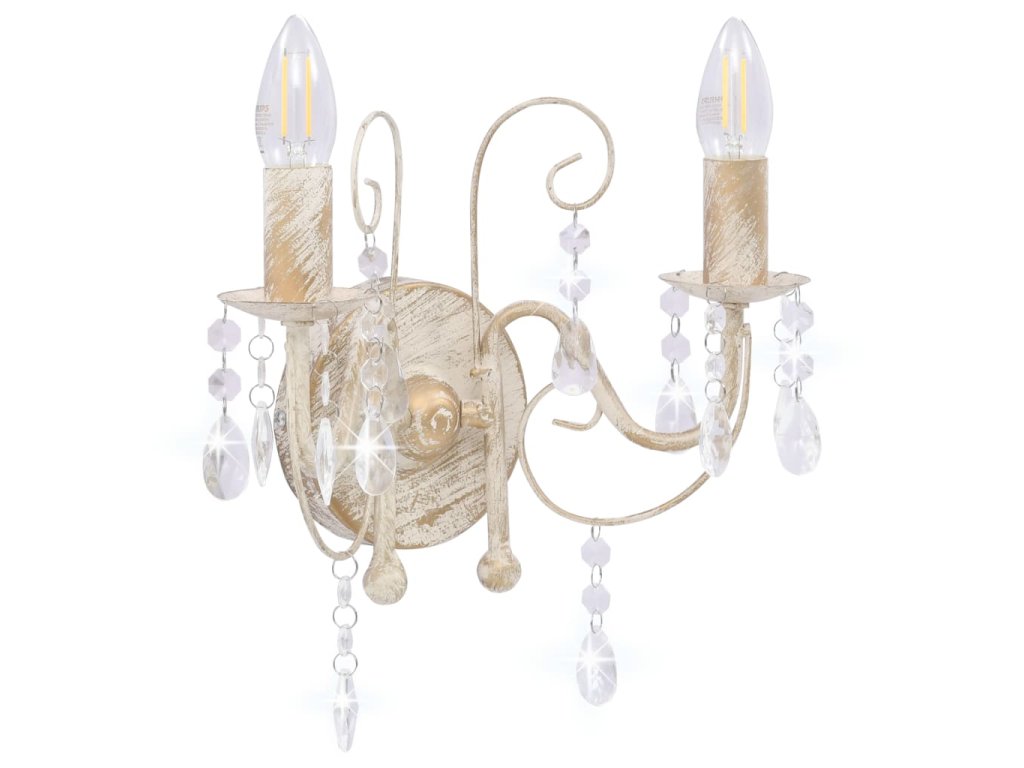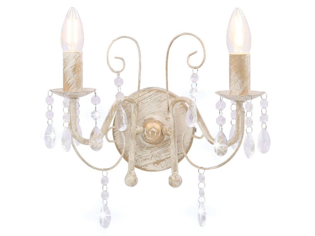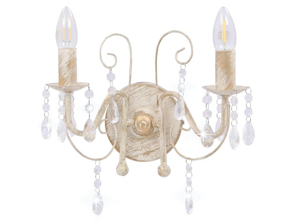 Nástěnná lampa s korálky bílá patina 2 x žárovka E14 281590