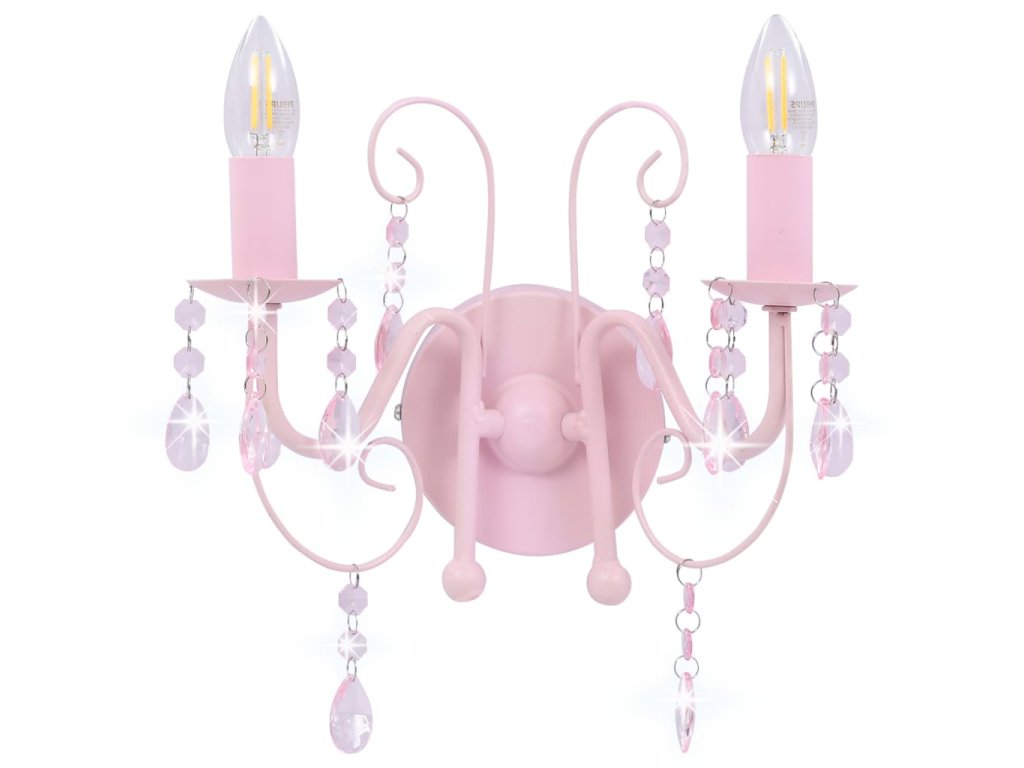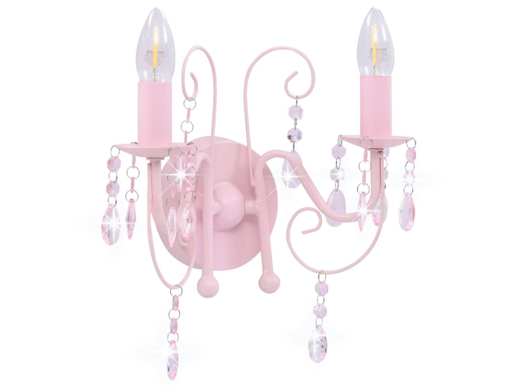 Nástěnná lampa s korálky růžová 2 x žárovka E14 281592