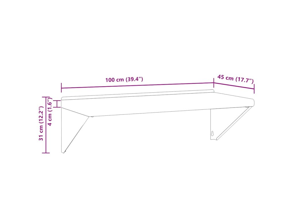 Nástěnná police 100 x 45 x 31 cm stříbrná nerezová ocel 30272