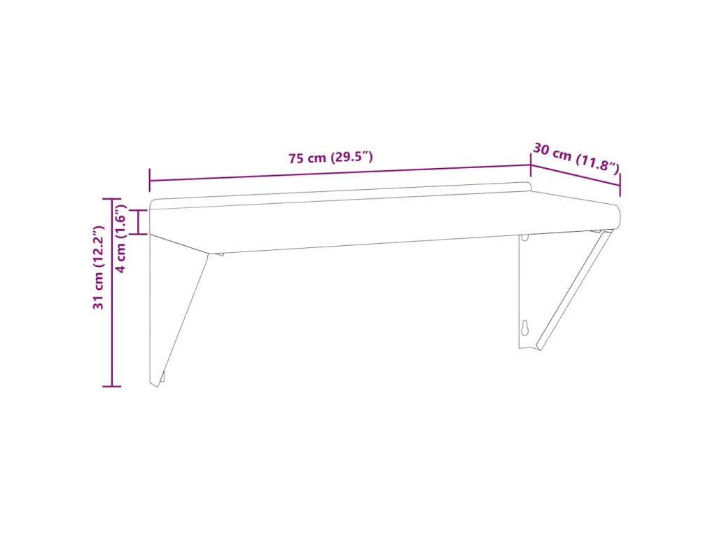 Nástěnná police 75 x 30 x 31 cm stříbrná nerezová ocel 30275