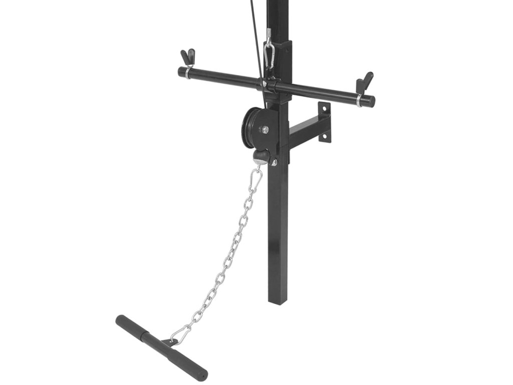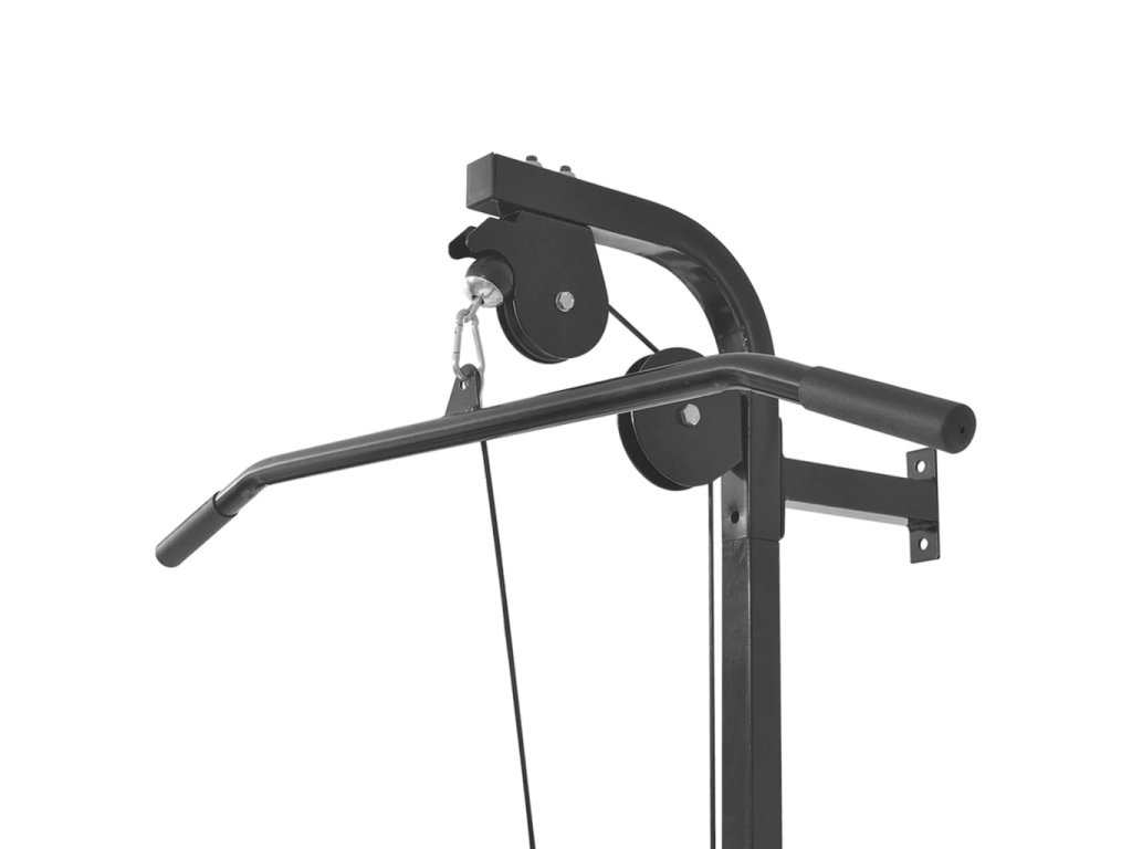 Tato nástěnná posilovací věž se dvěma kladkami je vybavena hrazdou na přitahování shora a nízkou hrazdou na shyby. Díky tomu si procvičíte všechny hlavní svaly vašeho těla.