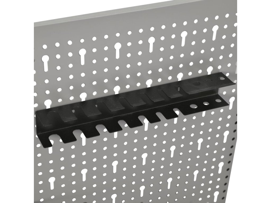 Tyto panely do dílny na nářadí jsou vyrobené z masivní oceli a unesou váhu celé řady různých nástrojů, jako jsou vrtačky, kleště, šroubováky a klíče. Panely jsou děrované pro snadné a bezpečné zavěšení nástrojů. Tyto 3 nástěnné panely je možné spojit dohromady a vytvořit jeden velmi pevný celek. Je to ideální doplněk ponků a dílenských skříní s praktickou šířkou 120 cm.
