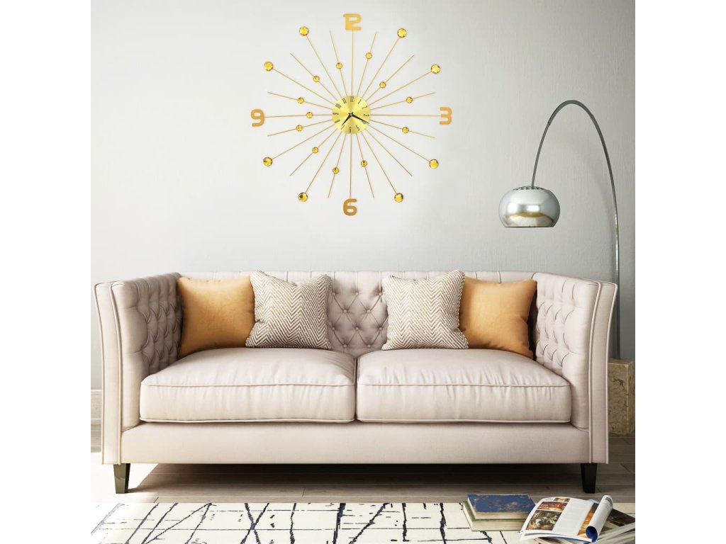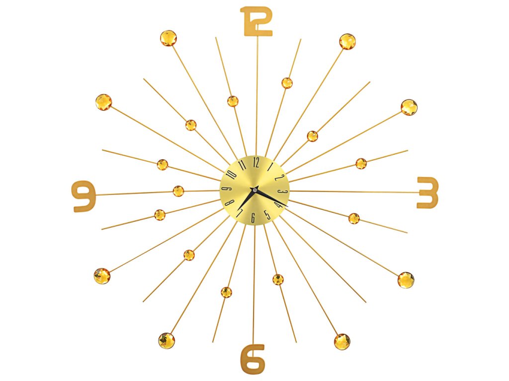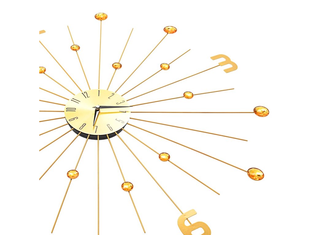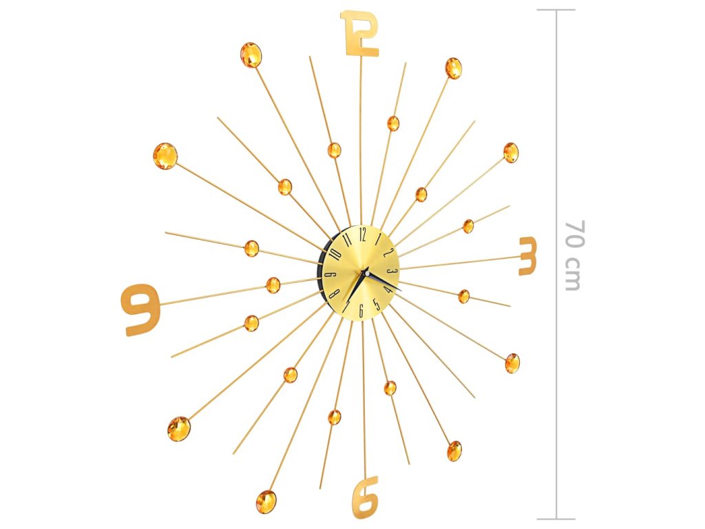 Pořiďte si do svého bydlení půvabný dekorativní prvek v podobě našich překrásných zlatých nástěnných hodin! Jsou vyrobeny z kovu a okamžitě zaujmou svým třpytivým křišťálovým zdobením, takže představují báječný způsob, jak rozjasnit a zkrášlit váš domov.