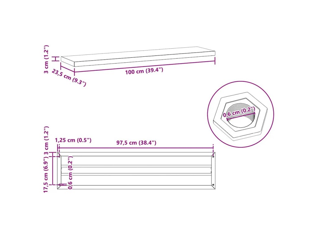 - Rozměry: 100 x 23,5 x 3 cm (D x Š x T)