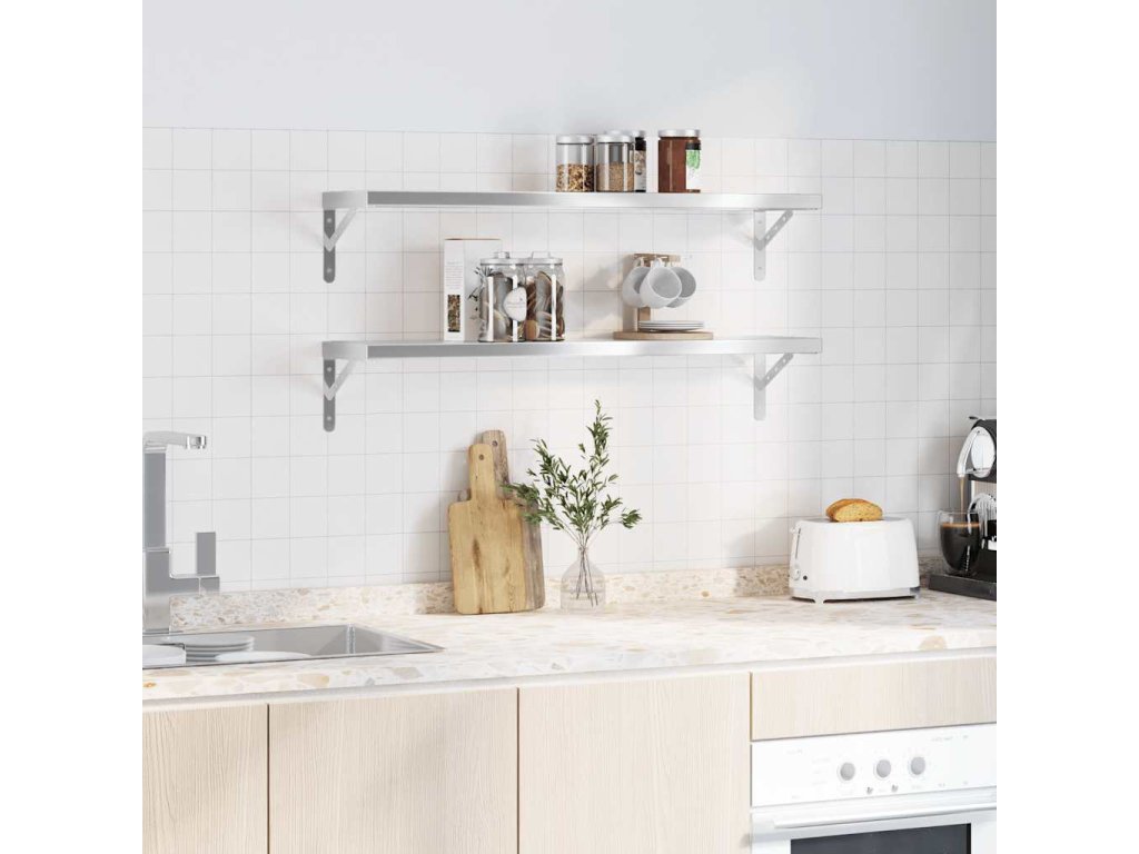 Nástěnné police 2 ks 100 x 23,5 x 3 cm stříbrné nerezová ocel 30280