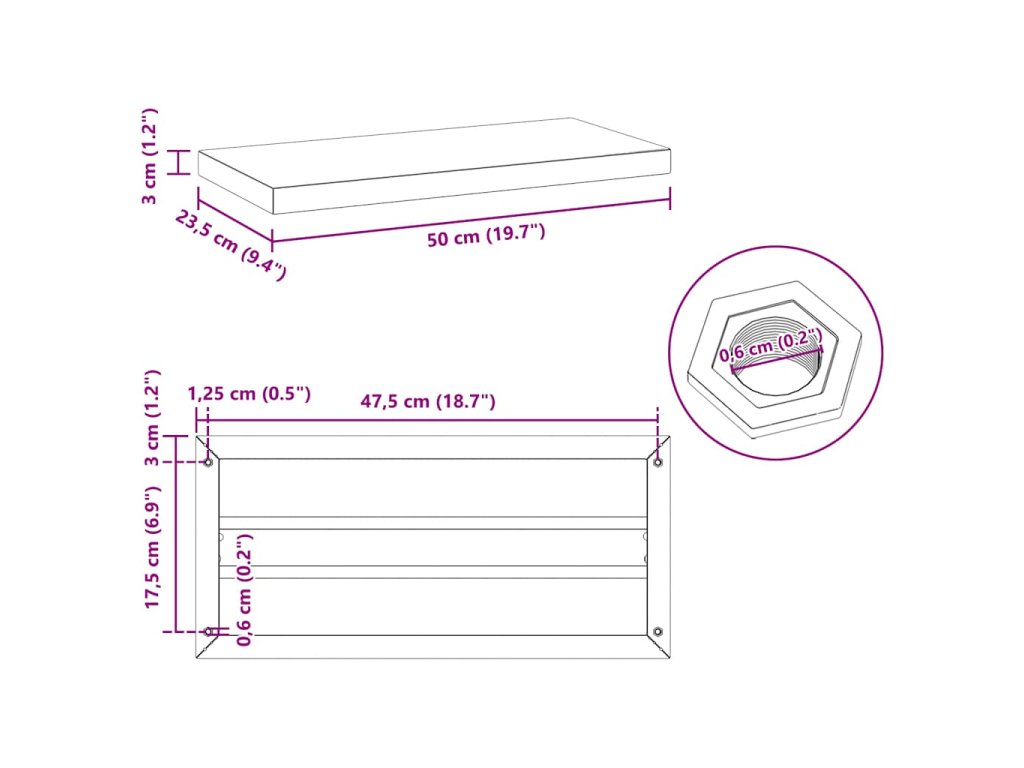 - Rozměry: 50 x 23,5 x 3 cm (D x Š x T)
