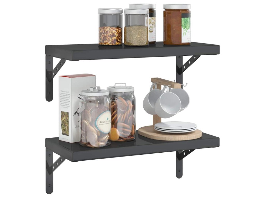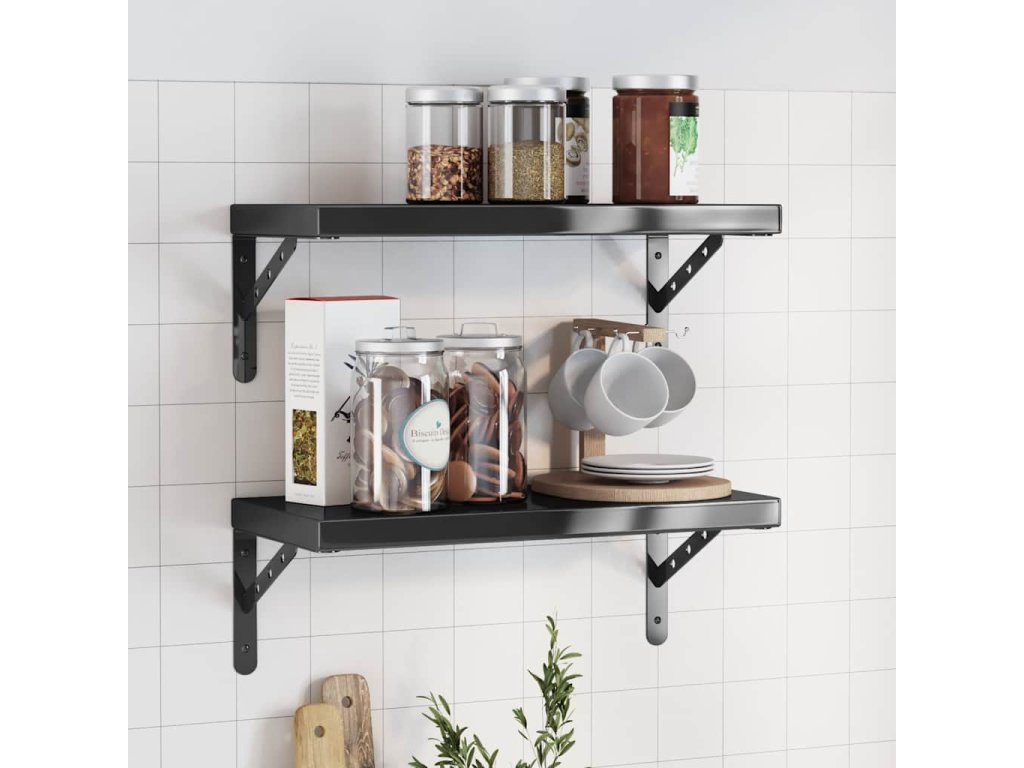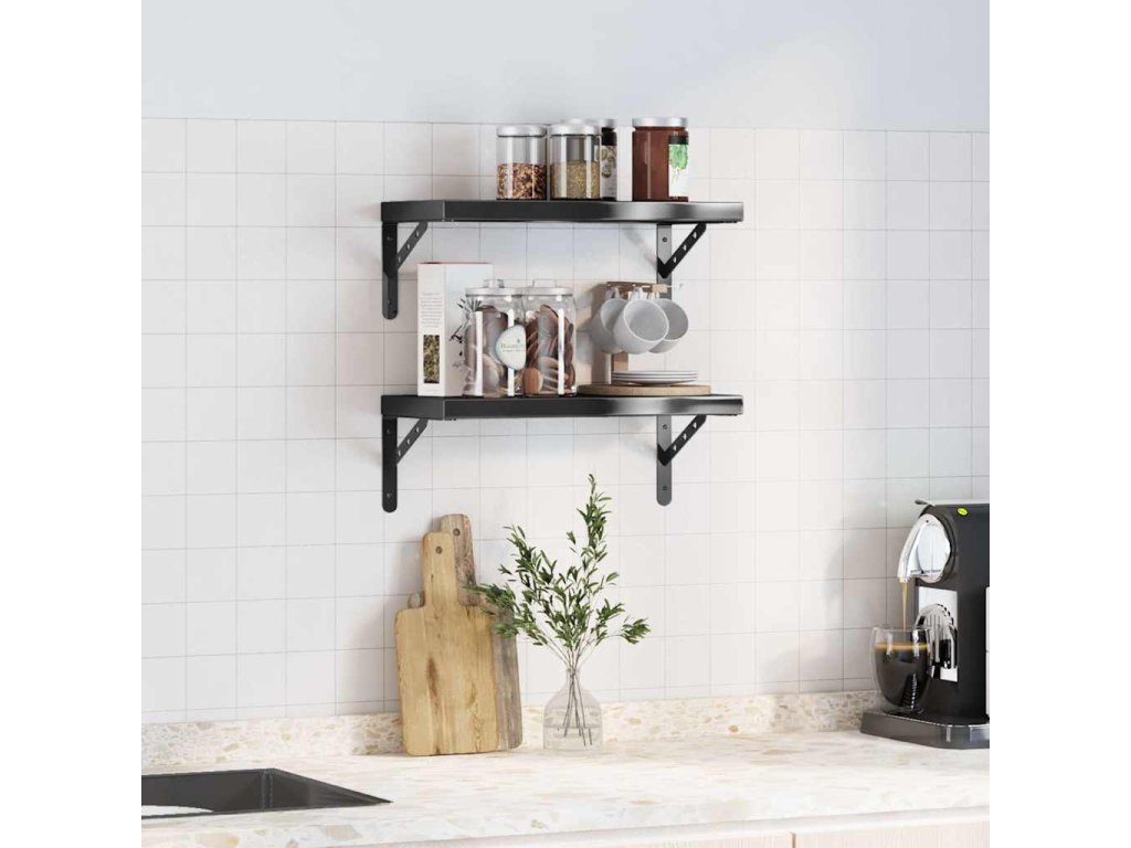 Nástěnné police 2 ks 50 x 23,5 x 3 cm černé nerezová ocel 30295