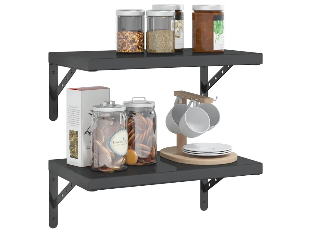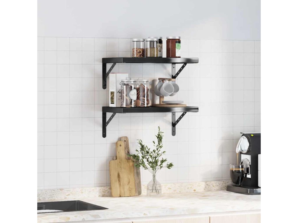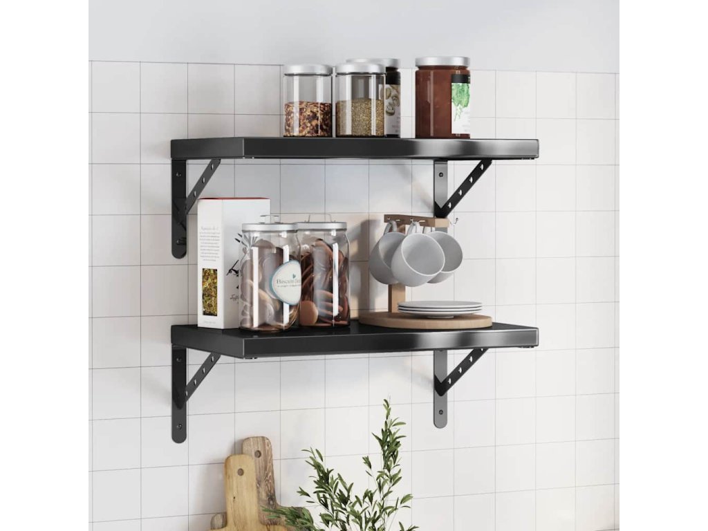 Nástěnné police 2 ks 50 x 30 x 3 cm černé nerezová ocel 30294