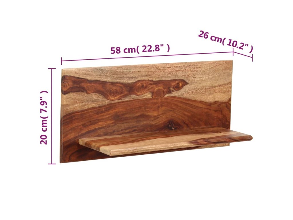 Nástěnné police jsou vyrobeny z masivního sheehsamu. Jedná se o tropické dřevo, jemuž se někdy také říká rosewood nebo palisandr a které je proslulé svou přírodní kresbou a hladkou texturou. Neohýbá se ani nepraská a vyznačuje se přirozenou odolností proti trouchnivění. Poličky jsou celé ručně dělané a jejich prvotřídní řemeslné zpracování spolu s rafinovanou kresbou dřeva činí každou z nich naprosto jedinečnou a lehce odlišnou od ostatních. Precizní rukodělná výroba rovněž zaručuje, že byla každá fáze výrobního procesu vykonána s mimořádnou péčí, ať už se jedná o leštění, natírání anebo lakování. Dřevěné police vám poslouží jako dokonalé řešení k ukládání a vystavování vaší sbírky knih, časopisů a dokumentů, ale i nejrůznějších ozdůbek, jako jsou zarámované fotografie či sběratelské předměty.