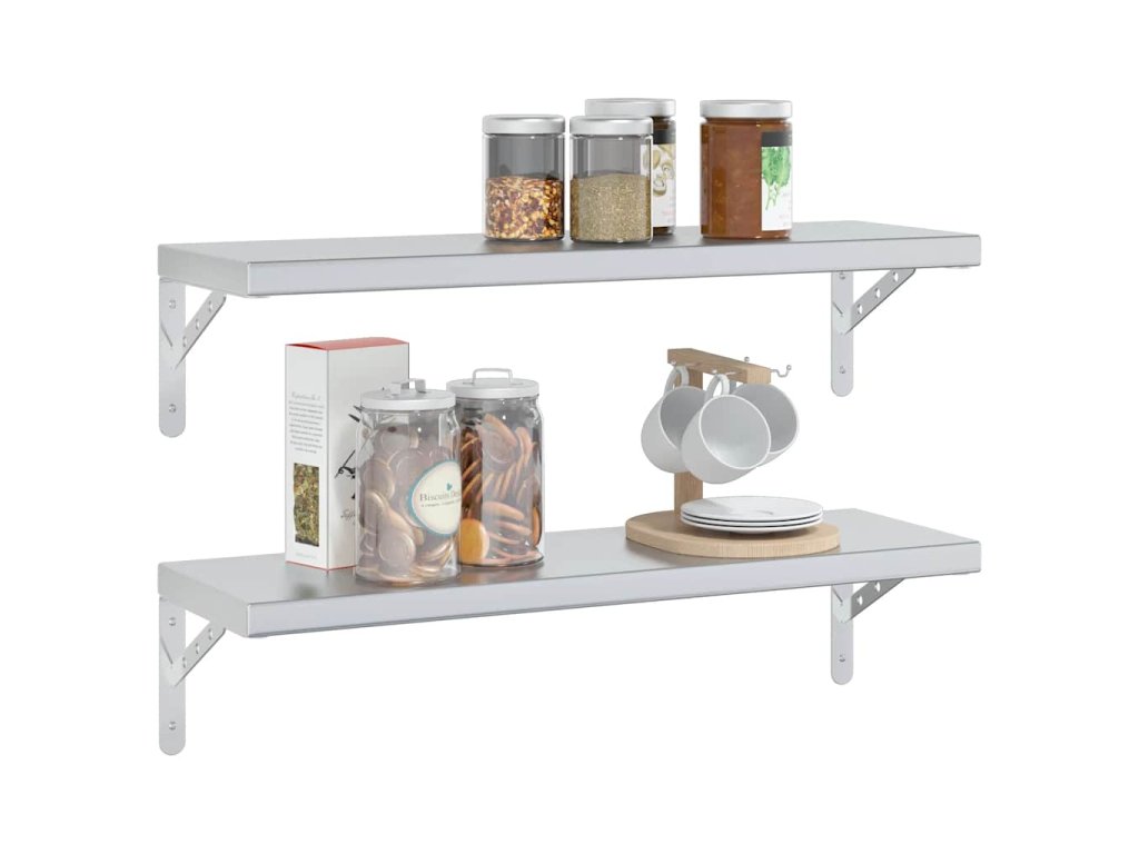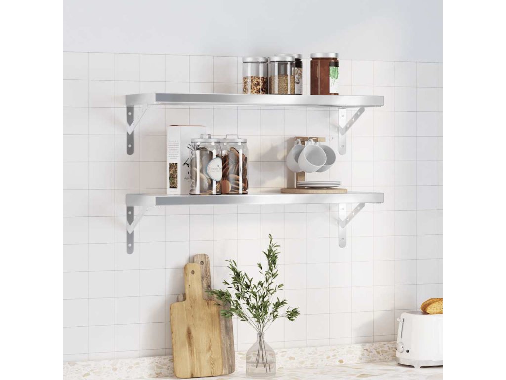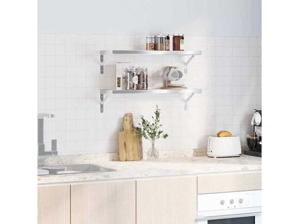 Nástěnné police 2 ks 75 x 23,5 x 3 cm stříbrné nerezová ocel 30283