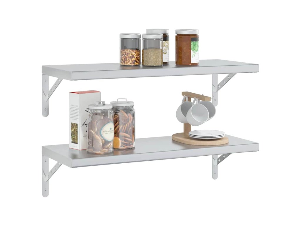 Nástěnné police 2 ks 75 x 30 x 3 cm stříbrné nerezová ocel 30282