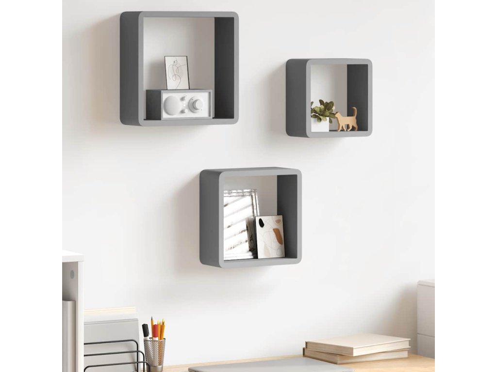 Nástěnné police kostky 3 ks šedé MDF 323954