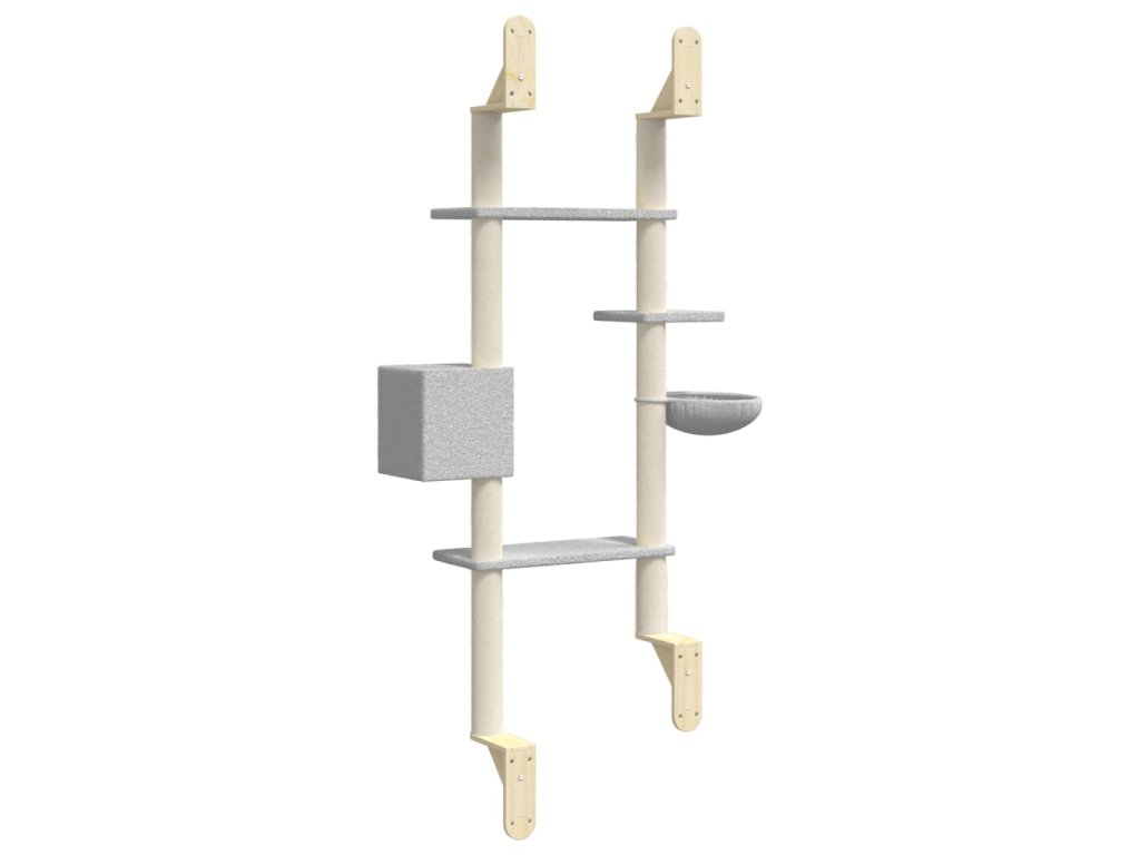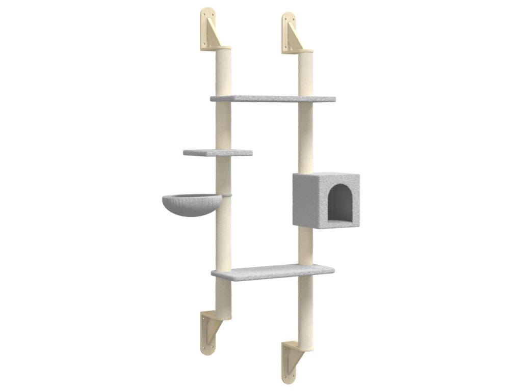 - Nástěnné provedení: Kočičí věž se montuje na stěnu a nezabírá místo na podlaze, je ideální pro malé nebo moderní místnosti a může efektivně šetřit místo.