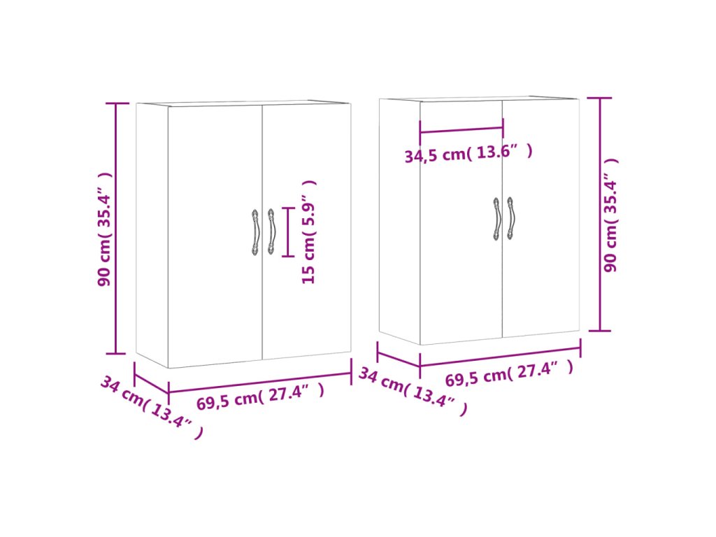 - Rozměry (každý kus): 69,5 x 34 x 90 cm (Š x H x V)