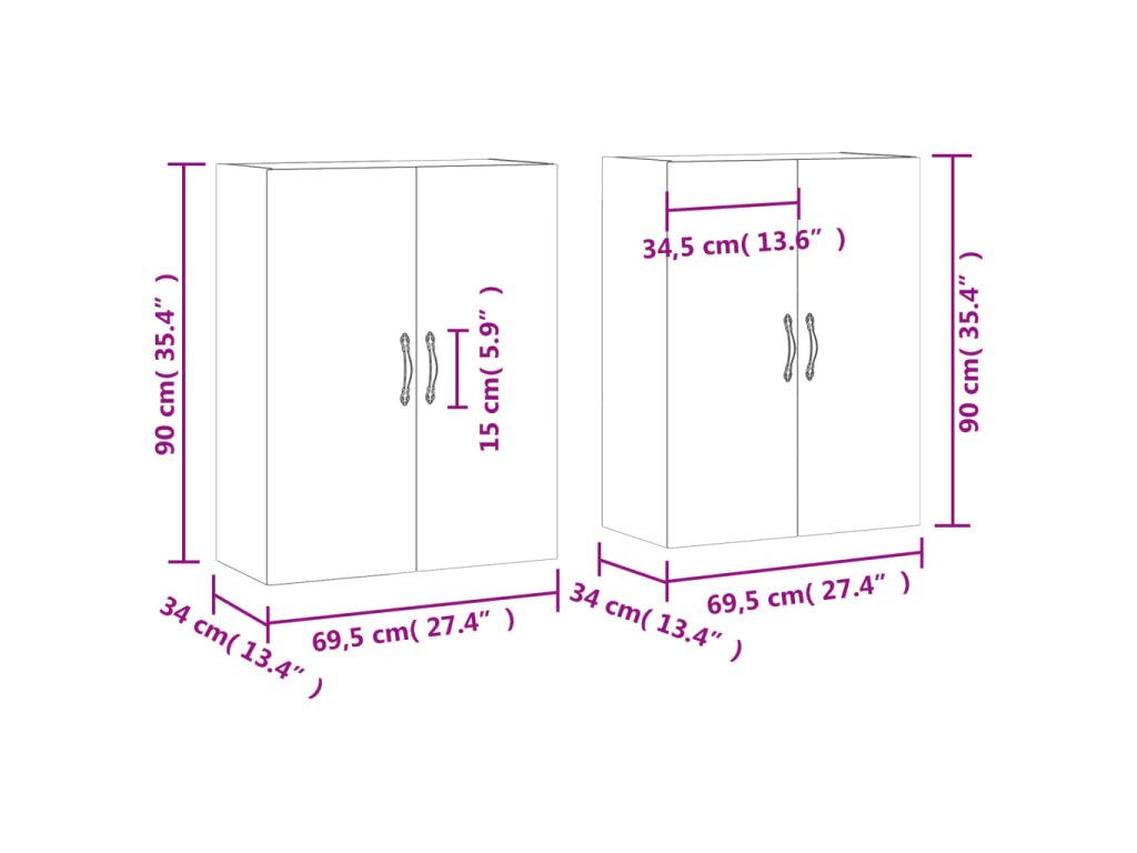 - Rozměry (každý kus): 69,5 x 34 x 90 cm (Š x H x V)