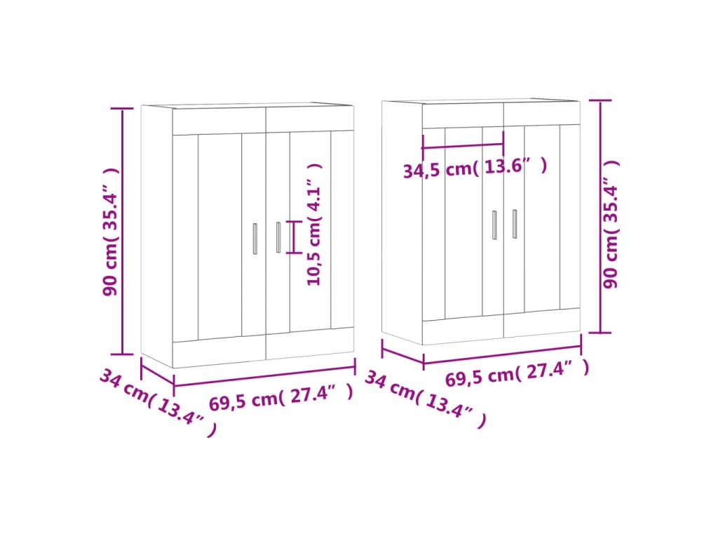 - Rozměry (každý kus): 69,5 x 34 x 90 cm (Š x H x V)