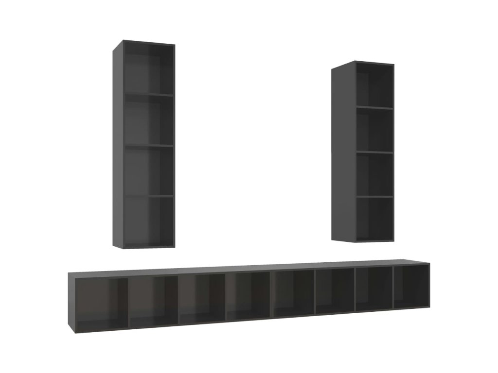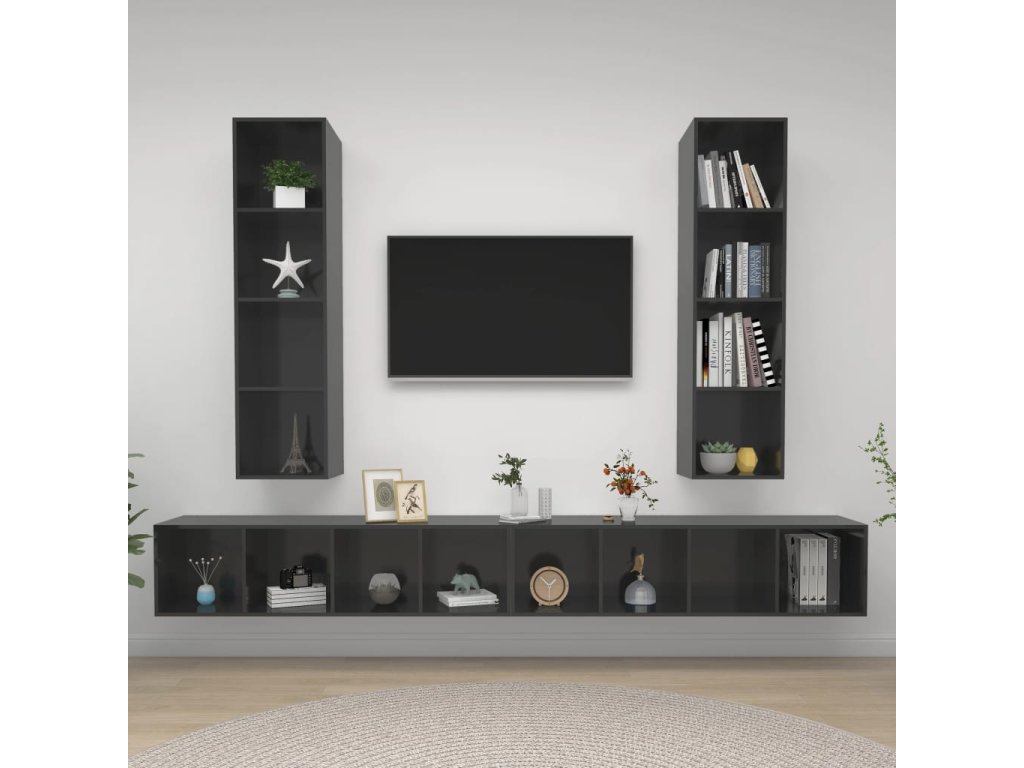 Nástěnné TV skříňky 4 ks šedé s vysokým leskem kompozitní dřevo 3079897