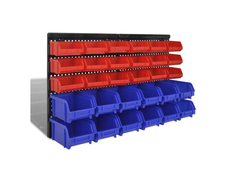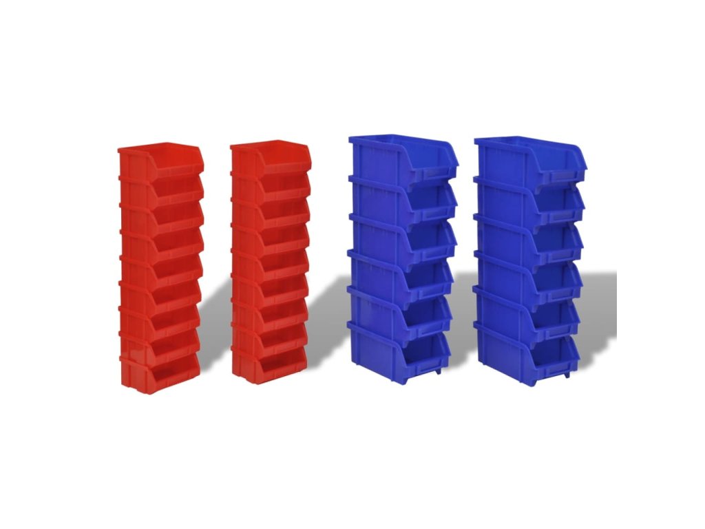 Nástěnné zásobníky do garáže 30 ks sada modré a červené 140761