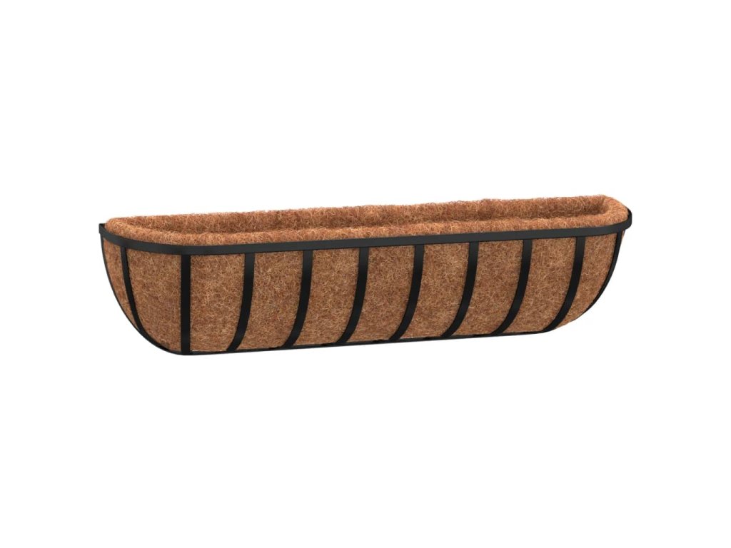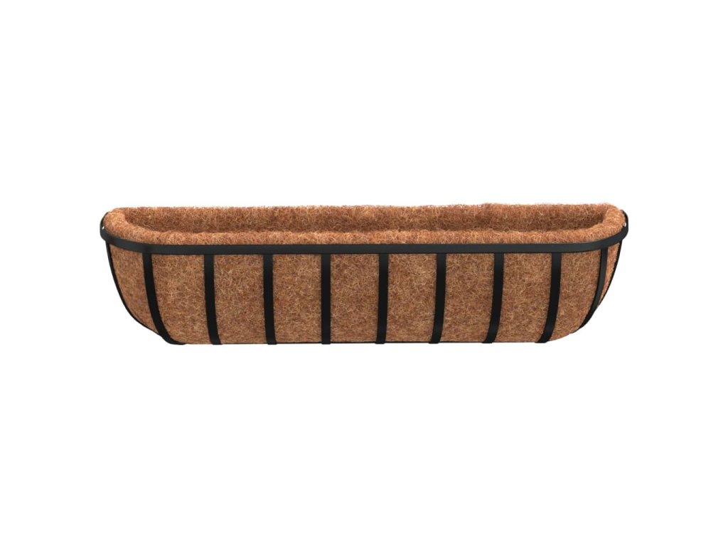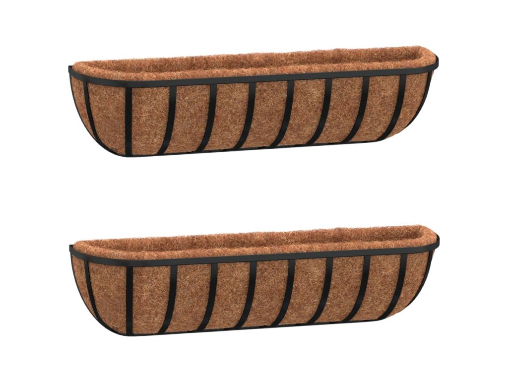 Nástěnné žlaby 2 ks s kokosovou vložkou černé 76x21x16 cm ocel 319355