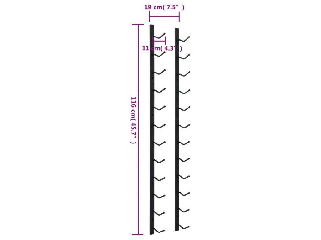 Nástěnný stojan na víno na 12 lahví černý železný 282466