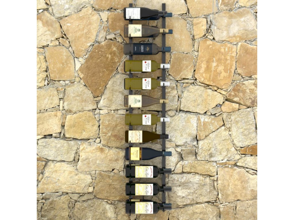 Tento stojan na víno pojme až 24 lahví vína. Je vyrobený z práškově lakovaného železa, které se snadno udržuje a zaručuje dlouhou životnost. Je to skvělý dárek pro vaše blízké a přátele, kteří jsou znalci a milovníky dobrého vína. Montážní materiál pro snadné připevnění na zeď je součástí balení. Jeho sestavení je snadné.