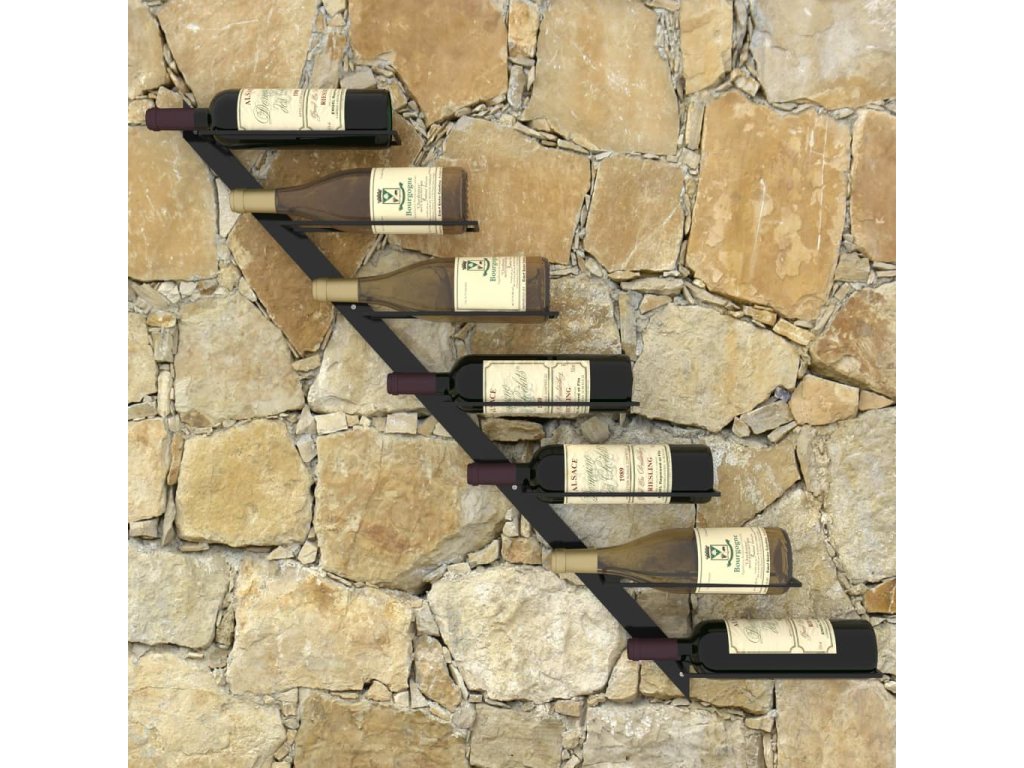 Tento stojan na víno pojme až 7 lahví vína. Je vyrobený z kovu, který se snadno udržuje a zaručuje dlouhou životnost. Je to skvělý dárek pro vaše blízké a přátele, kteří jsou znalci a milovníky dobrého vína. Montážní materiál pro snadné připevnění na zeď je součástí balení. Jeho sestavení je snadné.