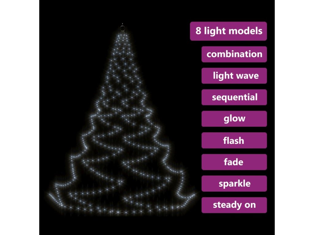 LED stromek je vybavený 720 energeticky úspornými LED diodami, které vydávají jasné světlo a jsou uspořádané ve vzájemně propojených svazcích. Diody mají 8 různých světelných režimů: kombinace všech, pomalá záře, blikání/mihotání, svícení ve vlnách, efekt tekoucí vody, sekvenční svícení, stálé svícení a pomalé blednutí. Světla se krásně rozzáří a vytvoří kouzelnou sváteční atmosféru. Tato vánoční dekorace je voděodolná, takže je vhodná pro vnitřní i venkovní použití. Dodáváme jí v kompletní sadě včetně 5 hrotů, háku a 15 stahovacích pásků k sestavení tohoto velkého LED světelného stromu.