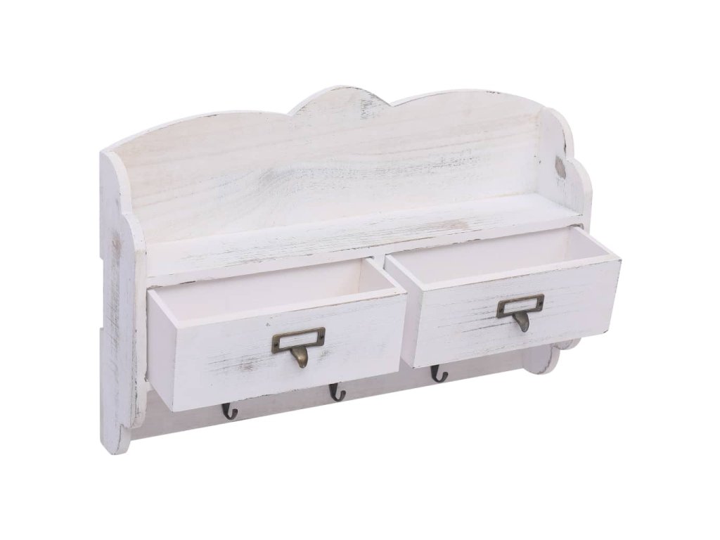Věšák disponuje neviditelným závěsným systémem, jehož prostřednictvím ho snadno připevníte na každou stěnu. Je vyrobený z kvalitního dřeva pavlovnie a topolu, výborně odolává opotřebení, dlouho vám vydrží a nezůstávají na něm skvrny. Kromě toho má v sobě zabudovanou i polici a 2 zásuvky, kam si můžete odkládat knížky, telefony, sběratelské předměty, ozdoby atd. Tři háčky vám pak poslouží k pověšení kabelek, kabátů, deštníků, přívěsků, klíčů a dalších věcí, a ušetří vám tak spoustu místa.
