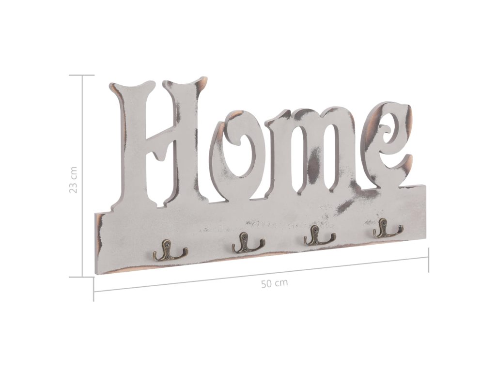 Věšák na oblečení vyniká svým jedinečným vyřezávaným nápisem „Home“ a má 4 měděné háčky, na které si můžete pověsit bundy, klíče, ručníky, deštníky a mnoho dalších věcí. Je vyrobený z kvalitní dřevotřísky, výborně odolává opotřebení, dlouho vám vydrží a nezůstávají na něm skvrny. Jednoduchý a praktický design věšáku nabízí výborný způsob, jak svému bydlení přidat na funkčnosti i potěšující atmosféře.