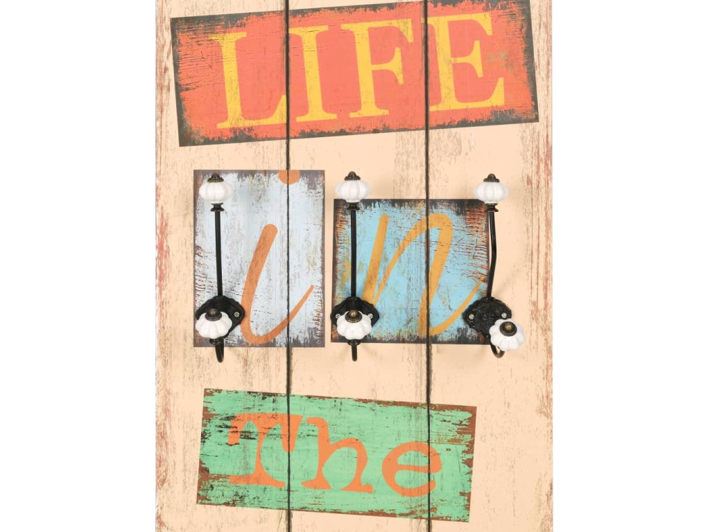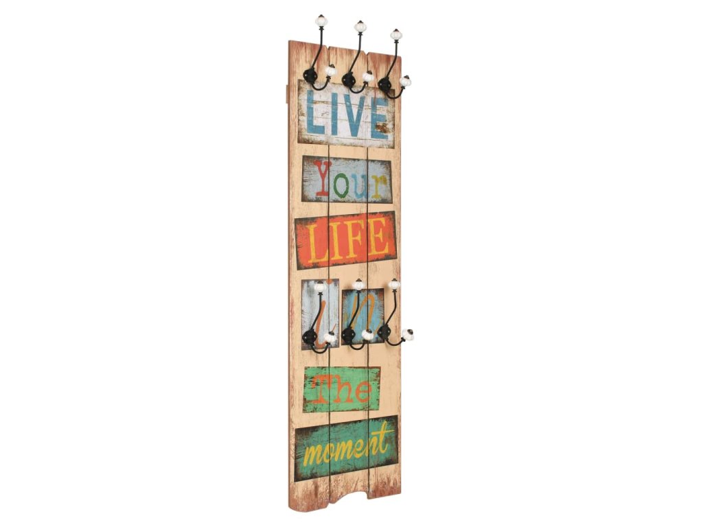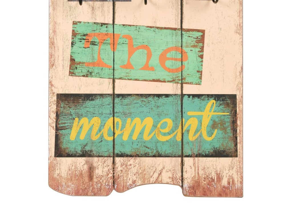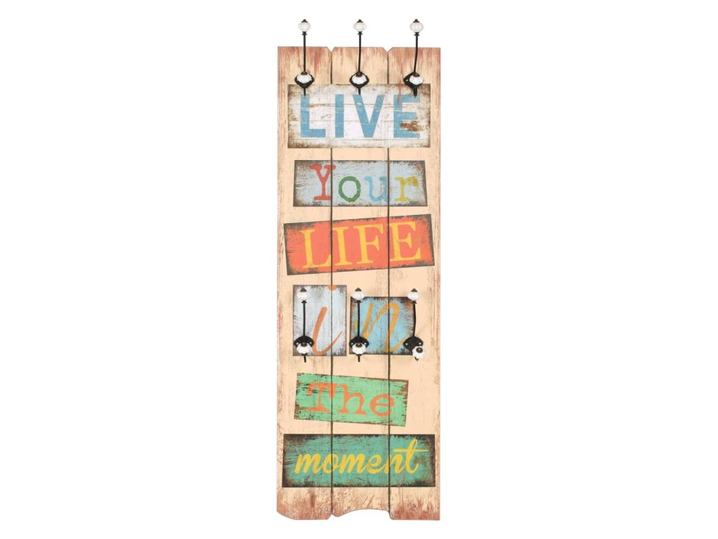 Tento nástěnný věšák s 6 háčky vaše hosty okamžitě na první pohled zaujme svým nápisem ve vintage stylu, jenž říká „Live your life in the moment." (Žij svůj život v každém okamžiku.)
