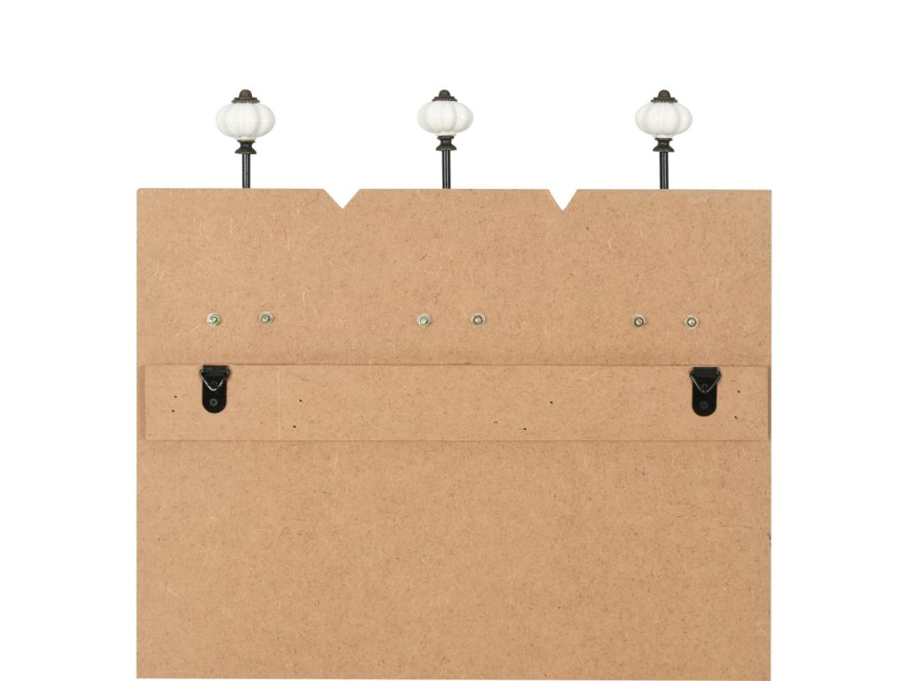 Deska věšáku je vyrobena z MDF, je tedy velmi pevná. Věšák disponuje dvěma řadami tří nádherných kovových háčků a poskytne vám spoustu prostoru pro vaše kabáty, tašky, šály, čepice a další maličkosti. Na zadní straně věšáku najdete dva upevňovací body, které vám umožní věšák snadno připevnit na zeď. Montáž je jednoduchá.
