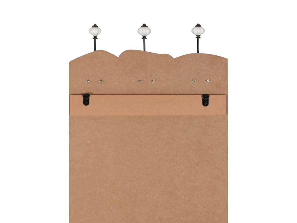 Deska věšáku je vyrobena z MDF, je tedy velmi pevná. Věšák disponuje dvěma řadami tří nádherných kovových háčků a poskytne vám spoustu prostoru pro vaše kabáty, tašky, šály, čepice a další maličkosti. Na zadní straně věšáku najdete dva upevňovací body, které vám umožní věšák snadno připevnit na zeď. Montáž je jednoduchá.
