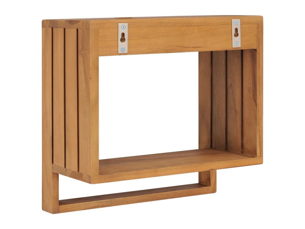 Věšák na ručníky je vyrobený z masivního teakového dřeva s přírodním povrchem, takže je poměrně stabilní a snadno se udržuje. Tento dřevěný věšák na ručníky má na boku otevřenou polici, kam si můžete uložit vaše šampóny, kosmetiku, zubní pasty. Slouží tudíž nejen jako držák na ručníky, ale také nabízí další úložné řešení.