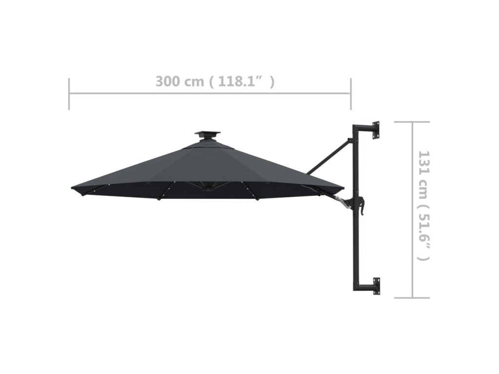 Nástěnný zahradní slunečník s LED 300 cm antracitový 312524