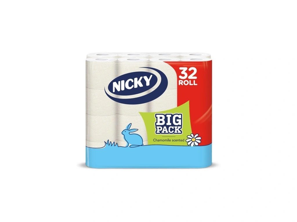 - Toaletní papír NICKY Big Pack Kamilla - bílý, 3 vrstvý toaletní papír s vůní heřmínku, 100 % celulosa.