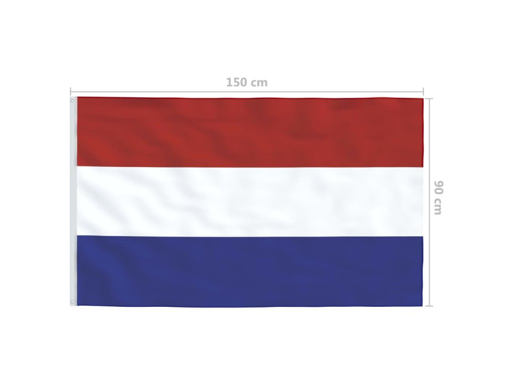 Holandská vlajka je vyrobená z odolného polyesteru. Je opatřená dvěma pevnými mosaznými průchodkami, které zaručují dlouhodobé používání. Vlajka má také vyztužené lemy a dvojité prošívání, aby nedocházelo k jejich roztřepení.