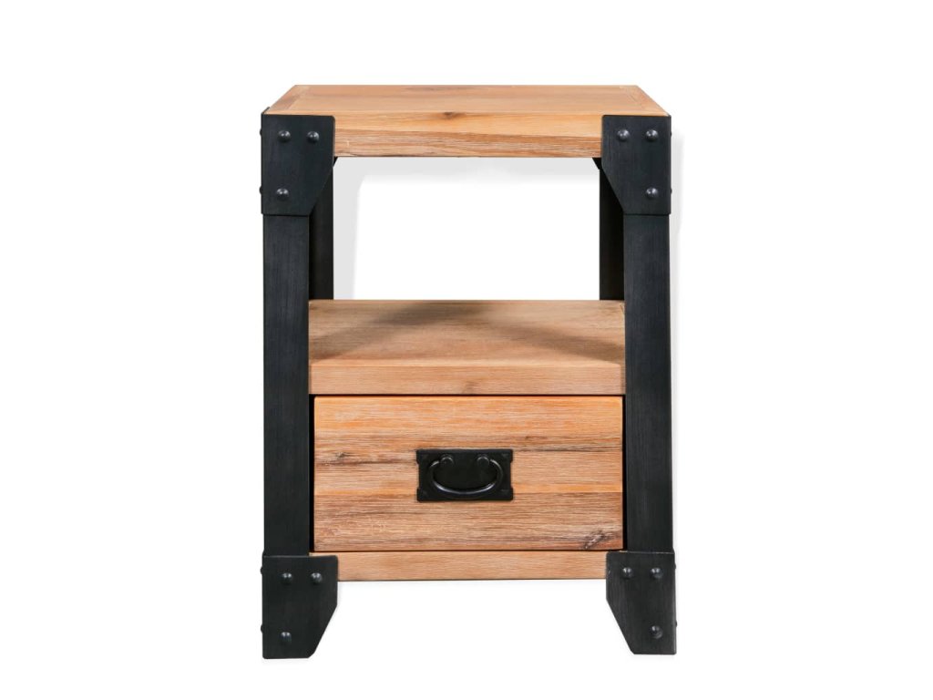 Náš noční stolek v moderním industriálním pojetí krásně ozvláštní vaši ložnici. Je vyrobený z vysoce kvalitního kartáčovaného akáciového dřeva, které doplňuje kování z černé oceli. Jde o moderní nábytek, který je ukázkou industriálního stylu, jenž je v současnosti tak populární, a který zaujme na první pohled.